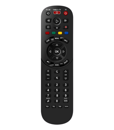 This remote includes all of the keys and functions needed for a comprehensive control experience of HD/DVR boxes.